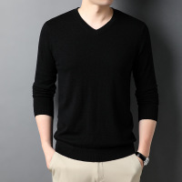 男装秋冬季300g男士羊毛衫鸡心V领套头纯色打底毛衣男