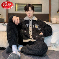 浪莎睡衣男士珊瑚绒秋冬季加绒加厚法兰绒开衫长袖长裤外穿家居服套装 家居休闲