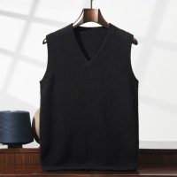 七针双股加厚男士V领秋冬羊绒背心坎肩商务休闲无袖毛衣针织马甲