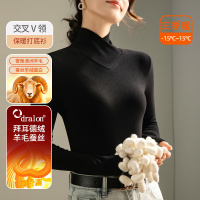 蚕丝德绒交叉V领秋衣女上衣羊毛保暖内衣加厚加绒发热打底衫冬季