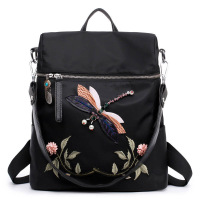 2017新款中国风多功能妈咪背包刺绣双肩包大容量三用尼龙布防水旅行包休闲帆布包