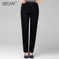 妈妈冬装洋气加厚松紧腰休闲裤新款中老年女装加绒直筒裤50岁