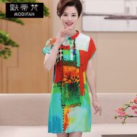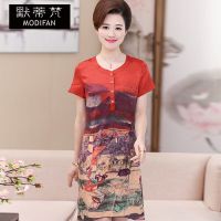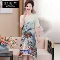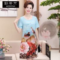 默蒂梵中老年女装夏装短袖中年桑蚕丝妈妈装中老年连衣裙大码宽松