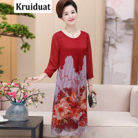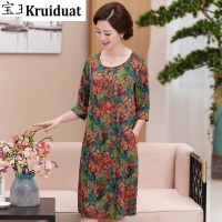 Kruidvat2017夏季妈妈装真丝连衣裙中老年女装时尚印花桑蚕丝中长款裙子Z010
