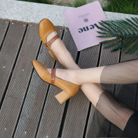 聚范法式玛丽珍小皮鞋女厚底中跟配裙子单鞋高跟鞋平底珍珠一字式扣带