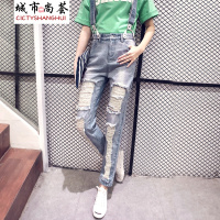 美式工装复古男裤 蓝调水洗微锥哈伦 春秋潮牌九分牛仔长裤子做旧
