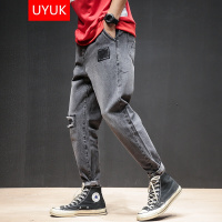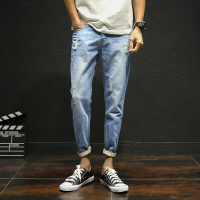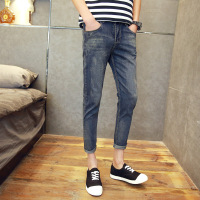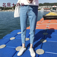 YANXU夏季薄款浅色九分牛仔裤宽松男士潮牌韩版潮流修身休闲小脚长裤子