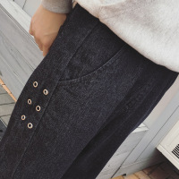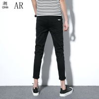 YANXU简约毛边黑色牛仔裤男潮流男装韩版弹力休闲修身小脚九分裤子
