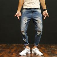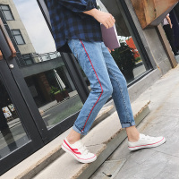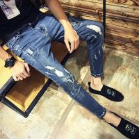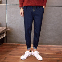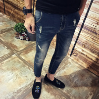 春秋九分牛仔裤男潮流痞帅修身小脚裤男士刺绣舒适简约休闲裤男款