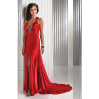 欧美礼服新款ebay性感V领吊带亮片晚礼服开叉长裙红色
