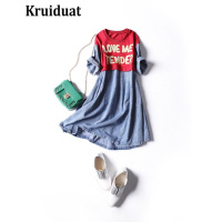 Kruidvat2017新款亮片刺绣拼接宽松短裙B074蓝色
