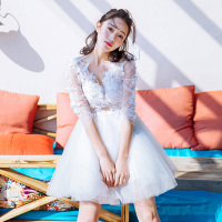 娉语可爱蕾丝亮片小礼服伴娘裙深大V领气质公主裙露背蓬蓬裙短裙秋冬