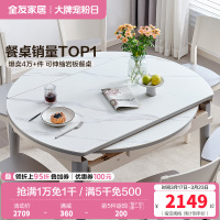 全友家居现代简约多功能餐桌可折叠方桌圆桌 实木框架4-6人岩板/钢化玻璃面
