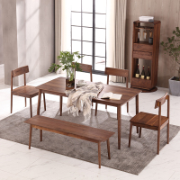 全简黑胡桃木餐桌椅实木餐桌组合4人新中式餐桌