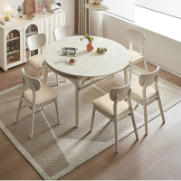全友家居餐桌椅组合奶油风伸缩实木框架6-8人可变圆折叠饭桌