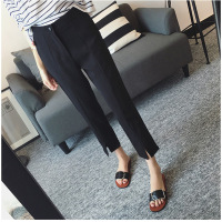 薇侣2017新品春秋九分开叉女高腰显瘦休闲西装裤大码宽松小脚裤女潮