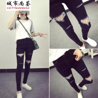 装女装修身显瘦黑色牛仔裤女破洞小脚裤铅笔裤休闲长裤