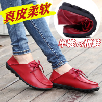 真皮单鞋女士平底休闲小皮鞋英伦孕妇妈妈鞋软底豆豆板鞋女鞋秋季