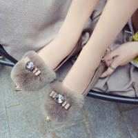 2017秋季韩版套脚水钻浅口尖头平底女休闲单鞋毛毛豆豆懒人鞋女鞋