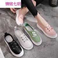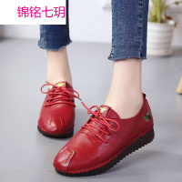 锦铭七玥2018春季百搭平底豆豆休闲系带防滑妈妈鞋舒适百搭软底女鞋孕妇鞋