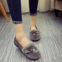 浅娜芬韩版秋冬款女鞋獭兔毛豆豆鞋平底毛毛鞋2016新款休闲加绒棉瓢鞋子
