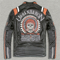 刺绣机车皮衣男士真皮牛皮短款皮夹克立领修身青年机车服外套
