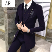 英伦绅士宴会修身西装三件套夜店型男韩版西服套装新郎礼服三件套