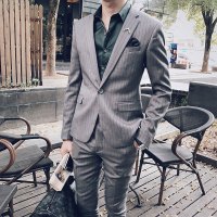男士商务休闲西服套装职业工装小西装男套装青年韩版修身条纹西服