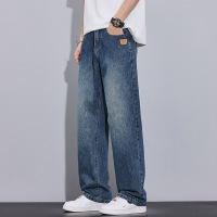 新款美式宽松直筒长裤水洗做旧复古牛仔裤男高街阔腿百搭休闲裤男