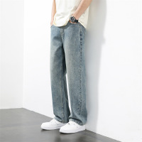 复古做旧水洗牛仔裤 男士宽松直筒阔腿裤 高街潮牌休闲牛仔长裤男