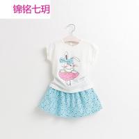 锦铭七玥清仓 夏款 韩版儿童卡通兔子印花T恤+爱心腰裙套装 童套装