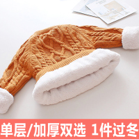 毛衣加绒 秋冬男童女童装纯棉圆领 加厚儿童宝宝打底衫套头