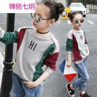 锦铭七玥女童卫衣春秋童装女孩韩版套头打底衫儿童2018春装休闲撞色上衣潮