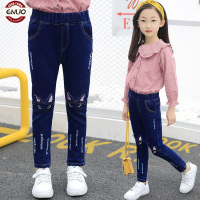 2017秋季新款欧美时尚儿童纯棉牛仔裤女中小童弹力修身牛仔裤蓝色
