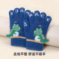 小熊针织毛线手套冬季保暖触屏纯色刺绣分指开洞漏指小香风潮