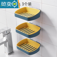 敬平肥皂盒架子家用壁挂式香皂盒沥水卫生间创意免打孔香皂置物架 深蓝+黄色 3个装