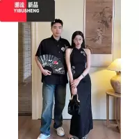 YIBUSHENG一尧[连理枝]新中式提花复古刺绣连衣裙女黑色衬衫情侣款