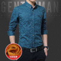 秋冬中年男土印花加绒加厚长袖衬衫男子长袖保暖衬衣爸爸