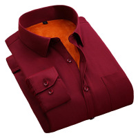 冬季男士保暖衬衫修身青年商务职业正装棉纯色长袖加绒加厚衬衣潮