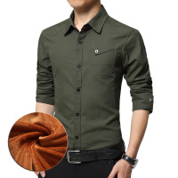 新款加绒男式长袖衬衫 军旅修身纯棉男衬衣休闲保暖加厚时尚潮流