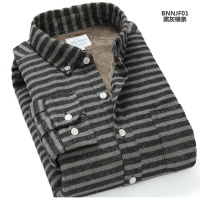 秋冬潮男纯棉法兰绒磨毛加绒保暖衬衫牛津纺横条加绒加厚保暖衬衣