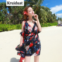 Kruidvat雪纺海边度假显瘦中长款短裙露肩吊带沙滩裙波西米亚裙WN白底花均码
