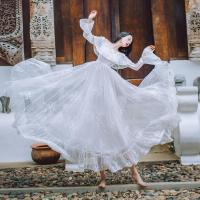 一字领露肩网纱刺绣蕾丝连衣裙波西米亚海边度假沙滩大摆长裙仙女