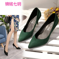 锦铭七玥时尚女鞋春秋四季新款2018潮尖头细跟单鞋百搭高跟韩版OL显瘦