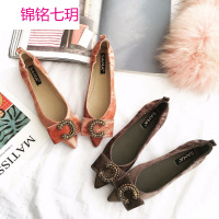 锦铭七玥韩版浅口2018春秋新款平底鞋百搭尖头豆豆鞋四季鞋单鞋 C扣孕妇鞋