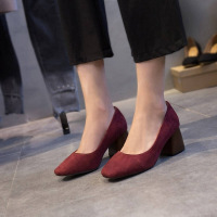 2018春夏季款韩版方头浅口粗跟绒面OL四季工作大码单鞋女潮