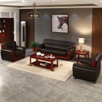 绵冠MIANGUAN办公沙发商务洽谈实木扶手接待会客沙发皮艺沙发