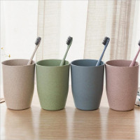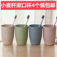 4个装塑料刷牙杯子洗漱杯小麦秆加厚创意情侣喝水杯家用圆形口杯