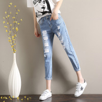 2017新款破洞牛仔裤女宽松九分裤韩版休闲哈伦裤女裤子学生春夏季2017新款