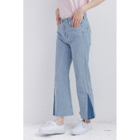 蜜妃儿2017夏季新款韩版浅色高腰牛仔裤阔腿裤九分裤女